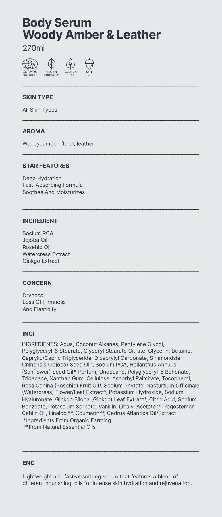 Natural. Silk Skin Body Serum, Woody Amber & Leather